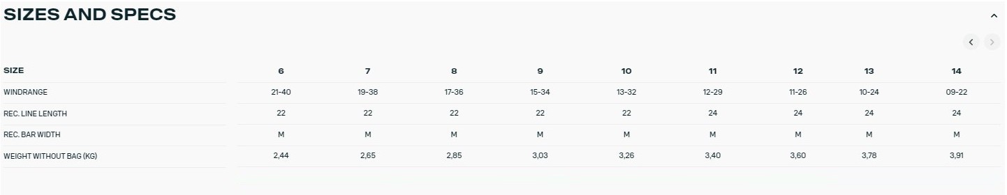 Dotato di un nuovo shape ad arco e profili ad high lift per un lift incredibile ed un hangtime prolungato. Goditi la riduzione del peso e l'efficienza migliorata grazie alla costruzione leggera delle tasche degli struts.