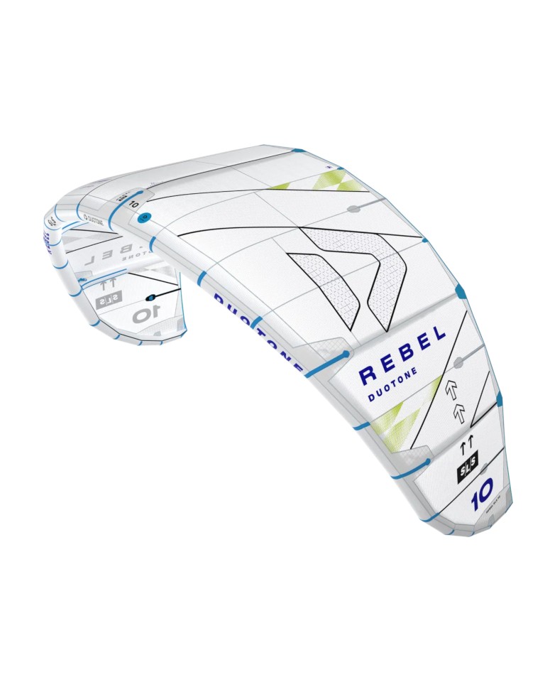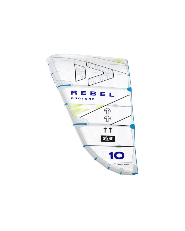 Duotone Rebel SLS Concept Blue si distingue per le sue eccezionali prestazioni premium rese possibili dalla piattaforma a 5 stecche. Le sue qualità prevedibili del sheet-and-go rendono facili i salti enormi, mentre la sensazione potente ed aggressiva soddisfa i rider sportivi che esigono prestazioni di alto livello e reattività dal loro kite.