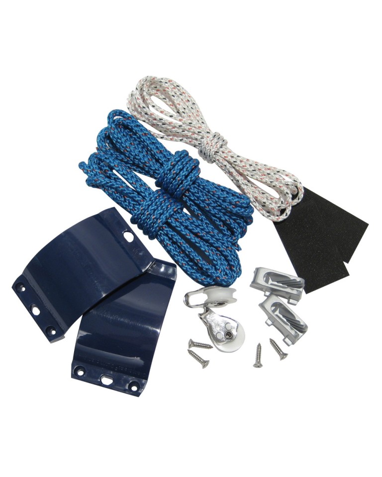 Duotone Outhaul Kit Race. Kit composto da due fasce e due strozzatori Clamcleat, due bozzelli e tre spezzoni di cima in Dyneema.