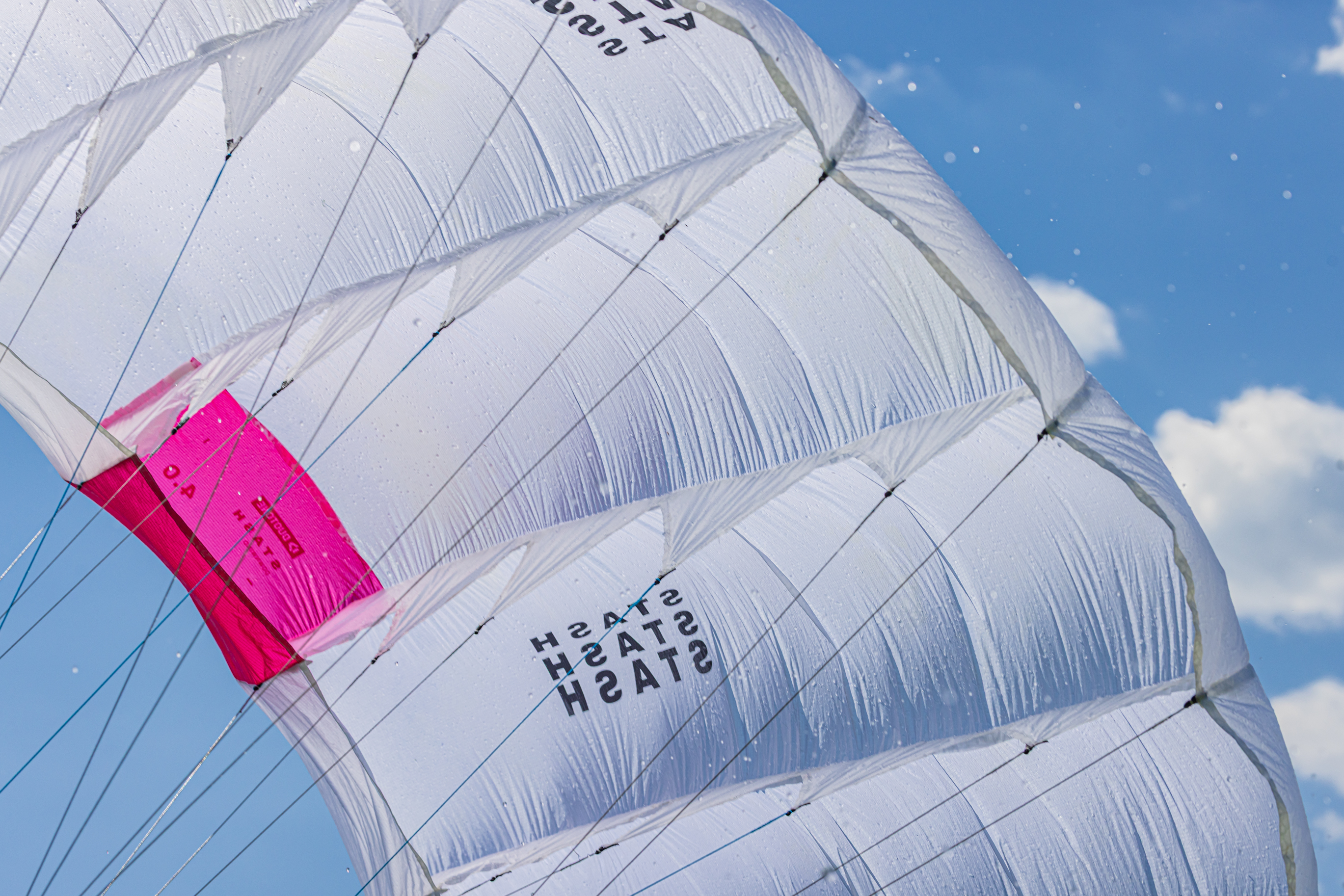Il "packing", il set up e il rilancio dello Stash sono resi facili grazie all'utilizzo dei colori: quello delle linee della leading edge è diverso dalle altre, così saprai dove afferrare per rilanciarlo. Un altro segno colorato sulla barra ergonomica in carbonio indica quale lato dev'essere spinto in avanti - tutti passaggi per rendere l'obiettivo del volo libero più accessibile.